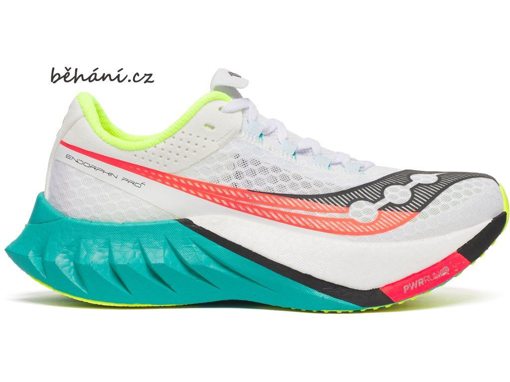 Dámská běžecká obuv Saucony ENDORPHIN PRO 4 S10939-97. Vrchní vrstva prémiové pěny PWRRUN HG zvyšuje návratnost vložené energie. Spodní vrstva pěny PWRRUN PB zajišťuje dynamický a tlumený došlap.