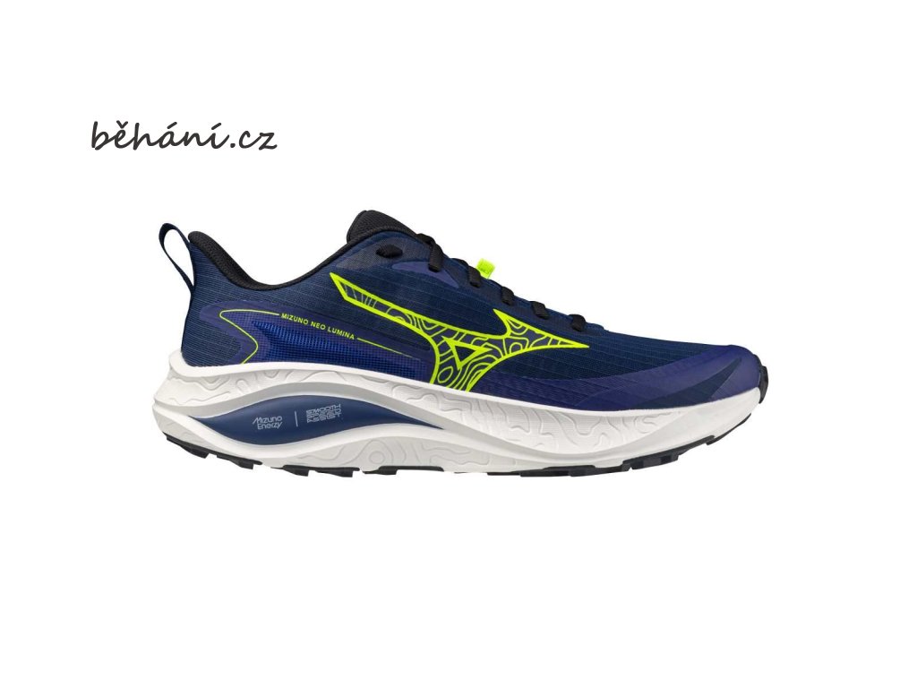 Pánská běžecká obuv Mizuno NEO LUMINA J1GJ267301. Ideální obuv pro začínající trailové běžce, kterým nabízí optimální kombinaci tlumení, trakce a stability. Měkké tlumení a přenos energie zajišťuje materiál MIZUNO ENERZY v mezipodešvi, a technologie Smooth Speed Assist dodává nášlapu plynulost a lehkost. Podešev Wgrip zaručuje vynikající trakci na lesních, štěrkových cestách a v terénu.