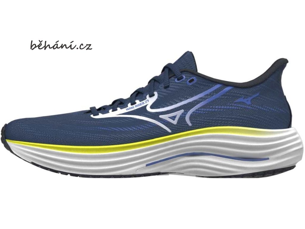 Pánská běžecká obuv Mizuno Wave Rider 29 J1GC250301. Nový materiál MIZUNO ENERZY NXT v patní části dodává nášlapu bezkonkurenční měkkost. Použité technologie zajišťují plynulý a pohodlný běh.
