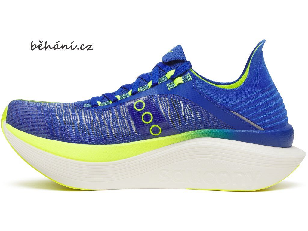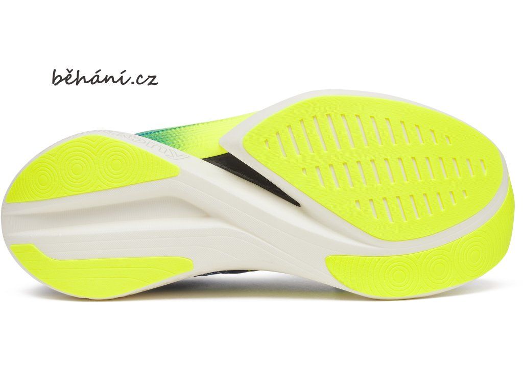 Karbonový plát po celé délce chodidla zajistí flexibilitu střední části chodidla a vyztužená špička z ní dělá nejagresivnější závodku ve stáji Saucony.