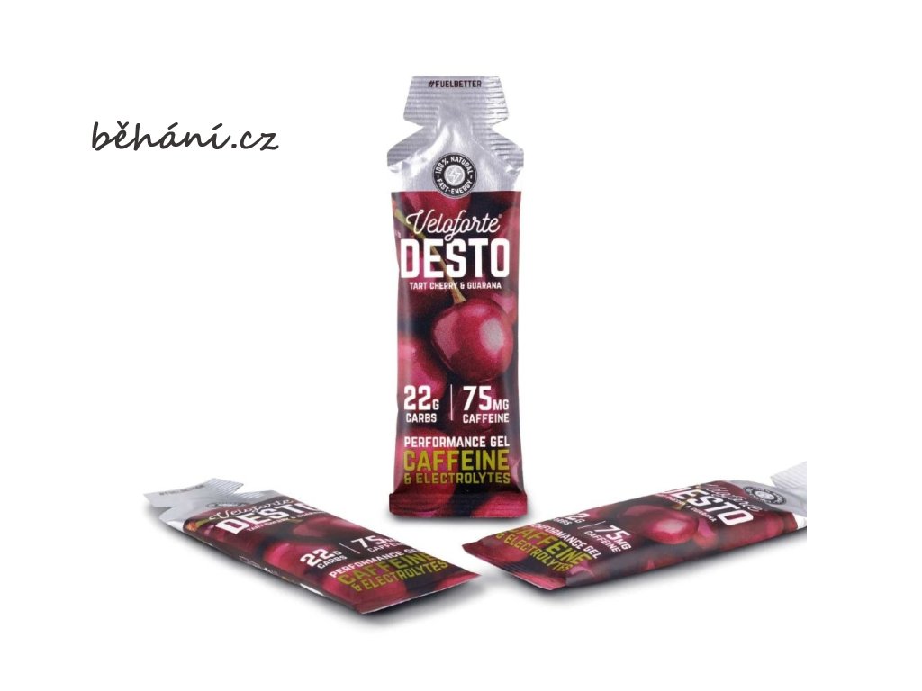 Když každá sekunda má váhu, malý a mocný Desto přináší ultimátní kombinaci přírodních sacharidů, elektrolytů a kofeinu. Každý kompaktní balíček o hmotnosti 33 g je plný velké třešňové chuti, připravený probudit vaše smysly a pomoci udržet výkonnost - a to vše jen za 89 kalorií na porci.