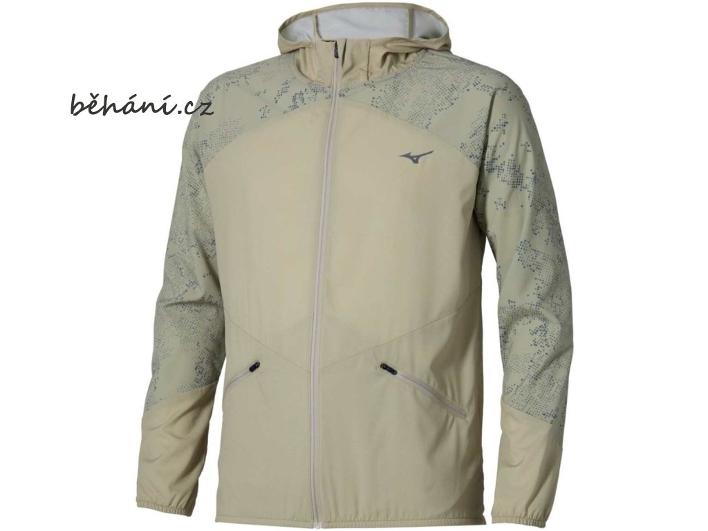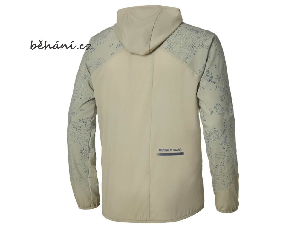Pánská běžecká bunda Mizuno Active Alpha Hooded Jacket J2GED00139 s reflexními prvky pro bezpečný běh za snížené viditelnosti a za tmy.