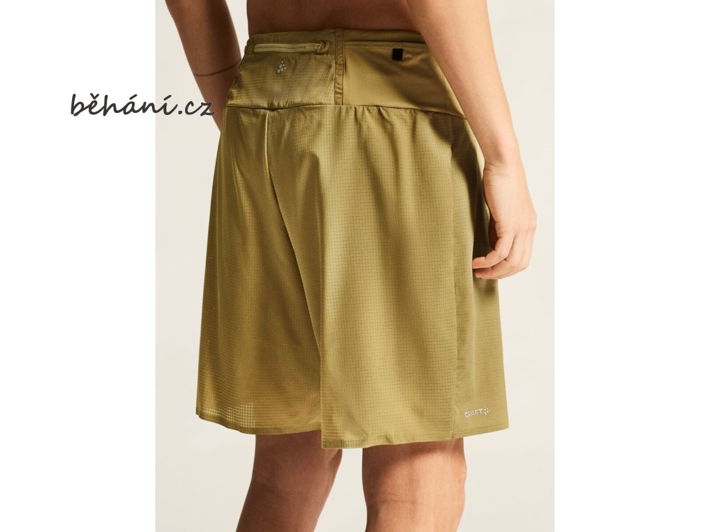 Pánské běžecké šortky 2 v 1 CRAFT PRO Trail jsou velmi lehké, prodyšné a poskytují spoustu kapes pro uložení výživy nebo jiných drobností.