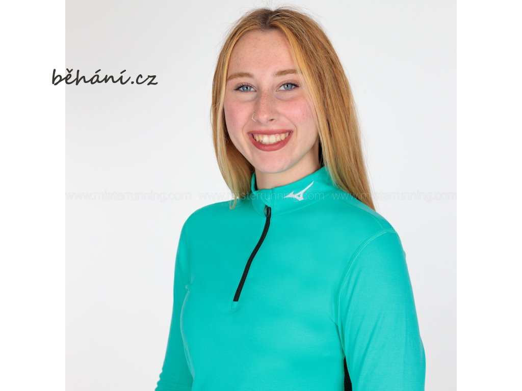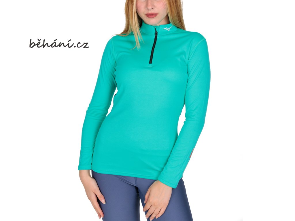 Dámské běžecké termotričko Mizuno Mid Weight H/Z A2GAA75032 s dlouhým rukávem a polovičním zipem je účinně hřejivou mezivrstvou do chladného počasí. Technologie Breath Thermo vytváří teplo, plynule zahřívá tělo a aktivuje se tělesným pohybem. Je ideální pro pohyb v chladném počasí. Díky antibakteriální úpravě se významně snižuje riziko vzniku zápachu.