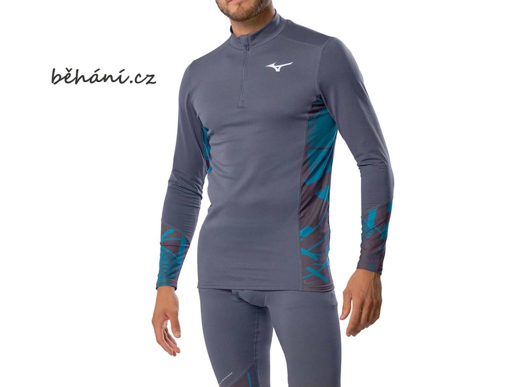 Pánské běžecké termotričko Mizuno Virtual Body G5 Half Zip A2GAC50010. Střih podle principů DynamotionFit, s díly Mizuno Move z pružného materiálu, kopíruje anatomii těla a umožňuje volnost pohybu.