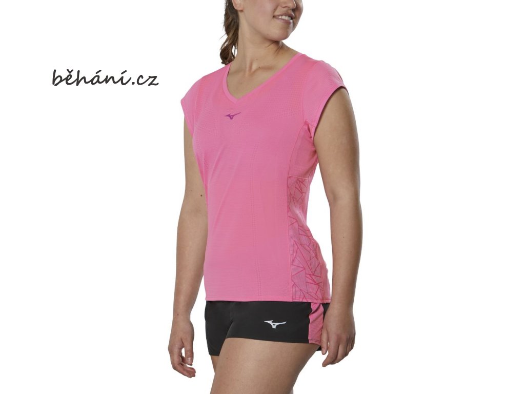 Dámské běžecké tričko Mizuno Aero Tee J2GA220064 - materiál DryAeroFlow zůstává vysoce prodyšný i za vlhka, při pocení. Je rychleschnoucí a udržuje na těle optimální teplotu.