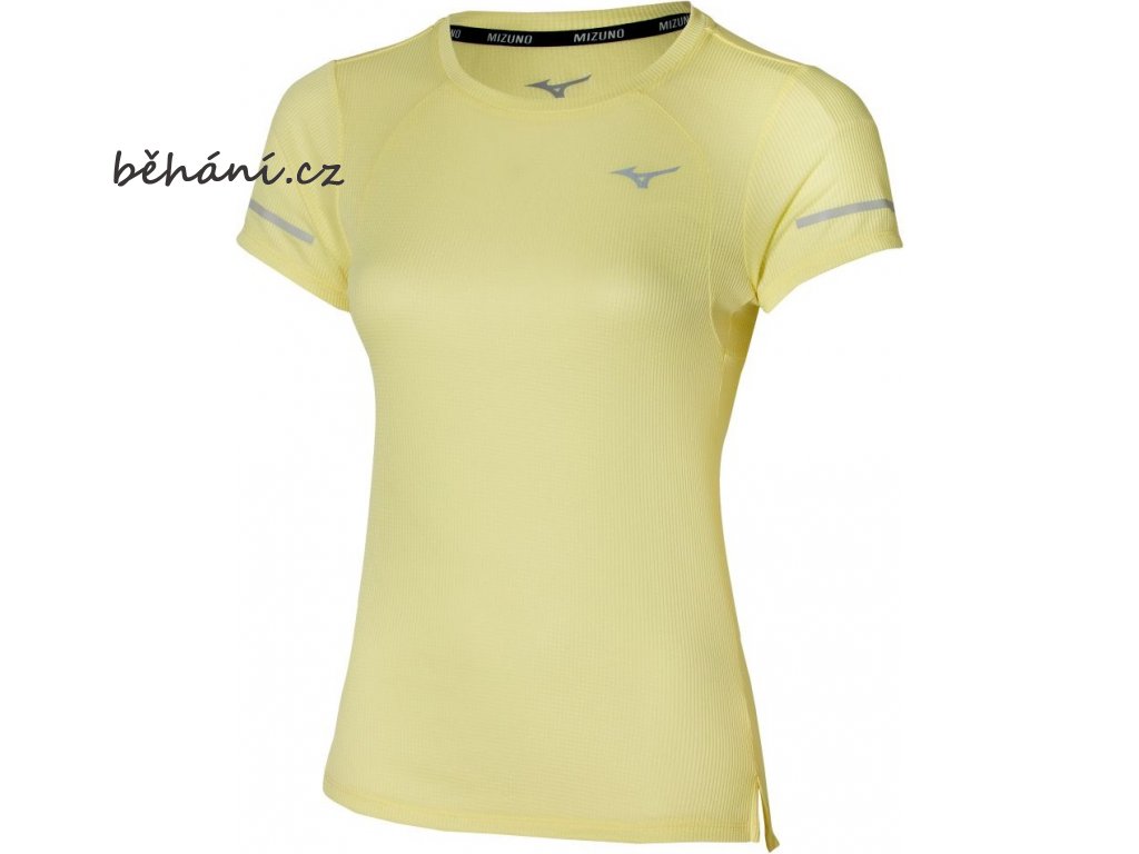 Dámské běžecké tričko Mizuno DryAeroFlow Tee J2GAA20441. Materiál DryAeroFlow zůstává vysoce prodyšný i za vlhka. Je rychleschnoucí a udržuje na těle optimální teplotu. Proužek s logy na vnitřní straně zadní části límečku. Reflexní prvky pro bezpečný běh za tmy.