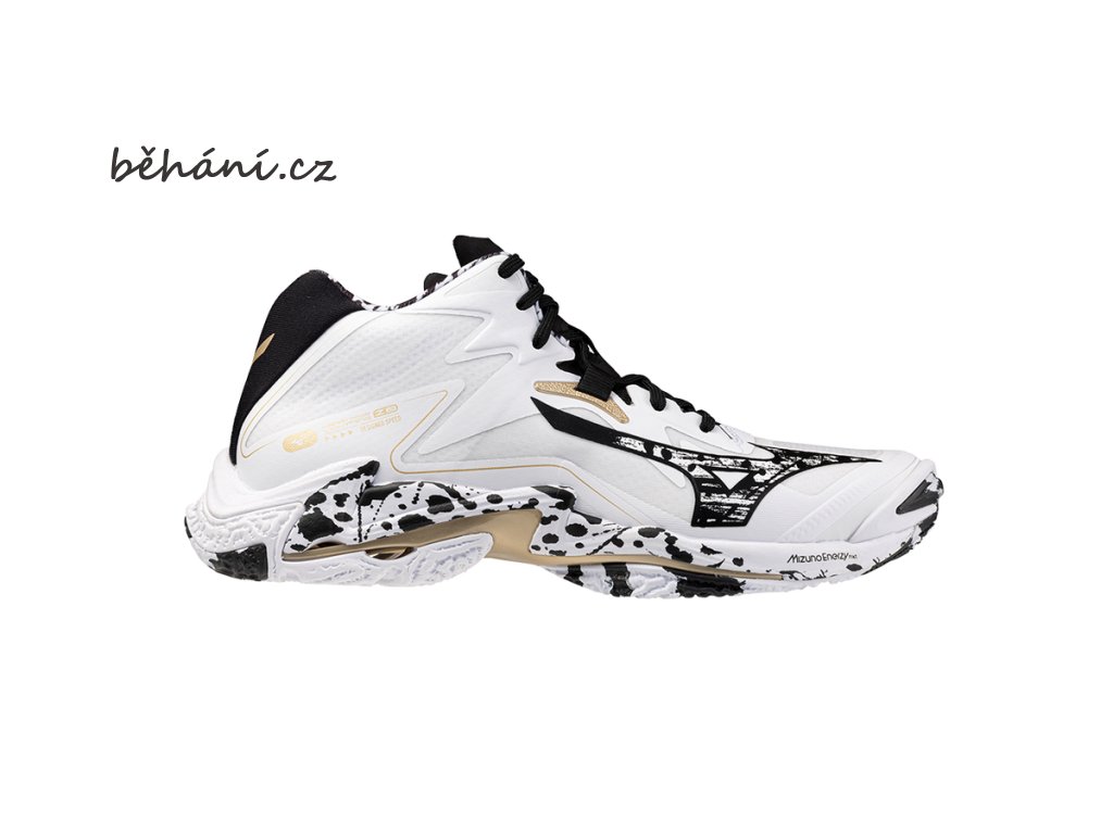 Unisexová volejbalová sálová obuv Mizuno Wave Lightning Z8 MID V1GA240541. Mezipodešev MIZUNO ENERZY, v kombinaci se stabilitou a pružností Mizuno vlnové desky, umožňuje plynulé a vysoké výskoky. Tento model obuvi si zachovává stejnou váhu 295 g (ve vel. 27 cm) jako model WAVE LIGHTNING Z7, ale současně nabízí účinnější tlumení. Bezešvý svršek pohodlně obepíná chodidlo.