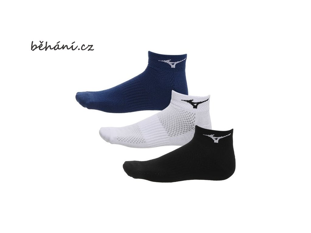 Běžecké ponožky Mizuno Training Mid 3P 67UU95011 (tři páry v balení) v trojím barevném provedení odvádí od těla vlhkost a udržují vaše nohy suché.