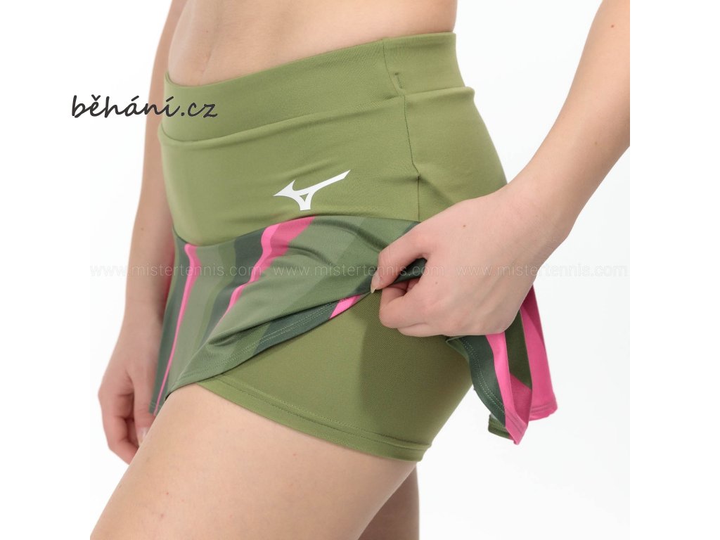 Tenisová sukně Mizuno Release Flying Skirt 62GBA70133 s vnitřními elastickými šortkami zajišťujícími pohodlí při sportovních aktivitách.