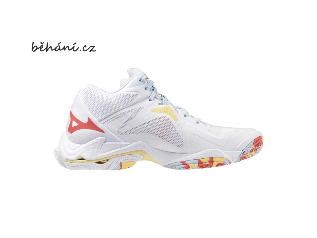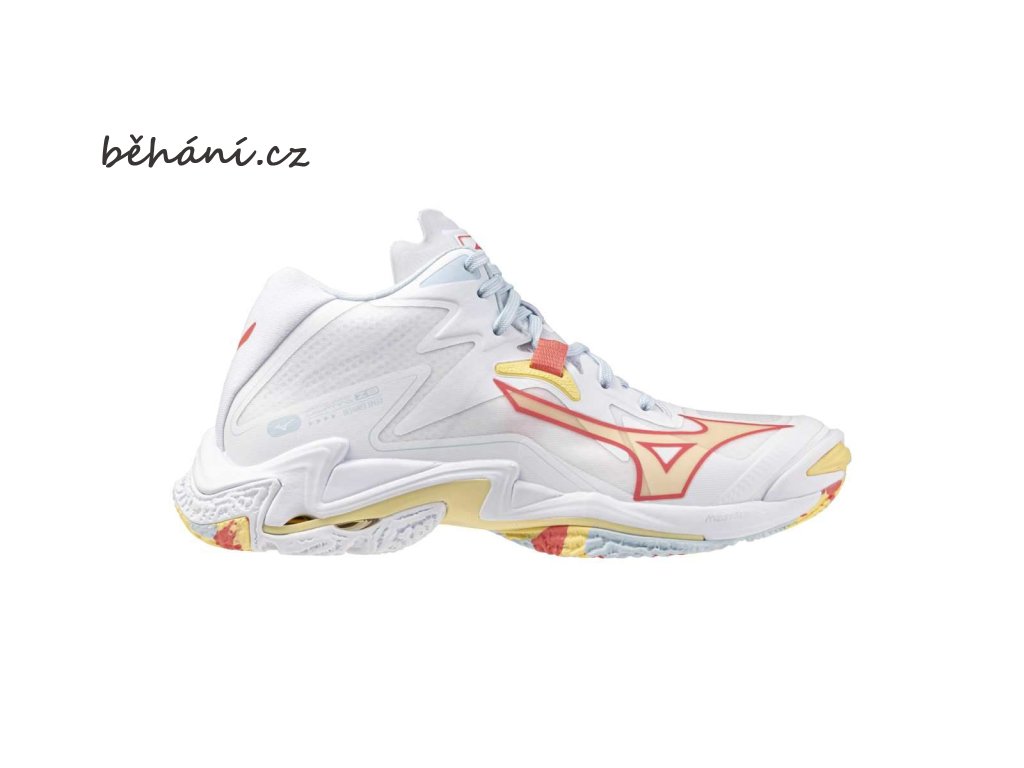 Dámská volejbalová sálová obuv Mizuno Wave Lightning Z8 MID V1GC240530. Mezipodešev MIZUNO ENERZY, v kombinaci se stabilitou a pružností Mizuno vlnové desky, umožňuje plynulé a vysoké výskoky. Tento model obuvi si zachovává stejnou váhu 295 g (ve vel. 27 cm) jako model WAVE LIGHTNING Z7, ale současně nabízí účinnější tlumení. Bezešvý svršek pohodlně obepíná chodidlo.