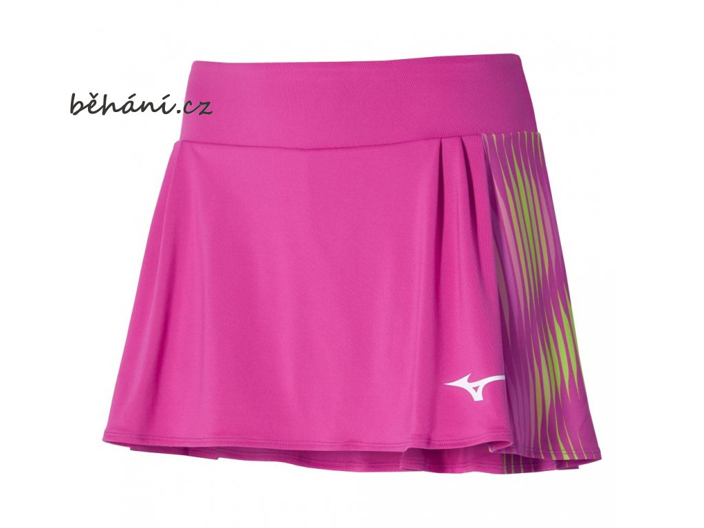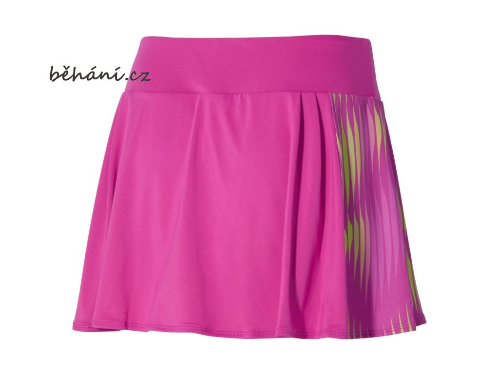 Tenisová sukně Mizuno Printed Flying skirt 62GBA20160. Lehký a pružný funkční materiál umožňuje volnost pohybu. Vnitřní elastické šortky zajišťují pohodlí při sportovních aktivitách. Potisk grafikou na bocích.