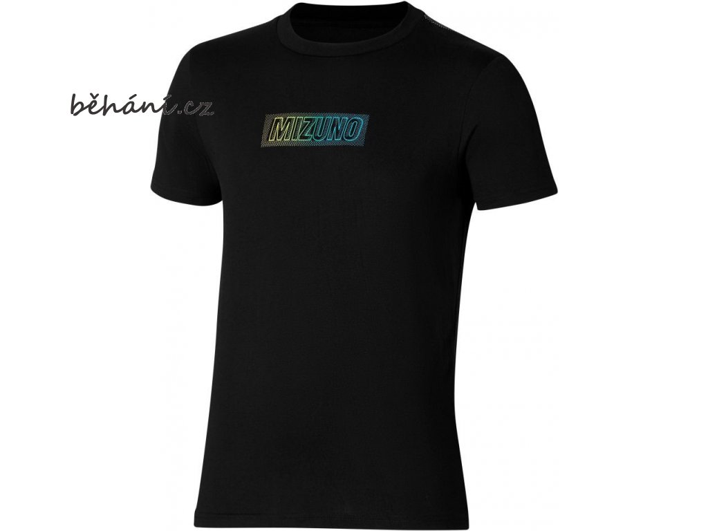 Pánské běžecké tričko Mizuno Release Tape Tee K2GAA50109 s příjemným měkkým omakem a proužky kontrastní barvy na ramenou.